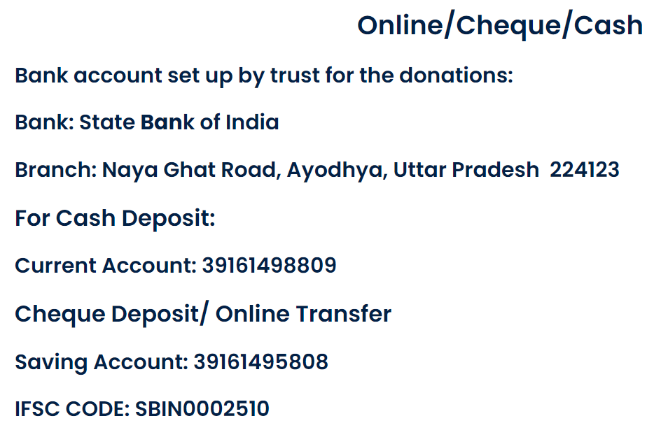 The Shri Ram Janma Bhoomi Tirth Kshetra Trust, which has been established to carry out the construction-related work, has confirmed that it will be accepting donations, support and grants from any person in cash or kind including immovable properties, without any conditions, which means that a person from any faith can make contributions towards the building of the temple.