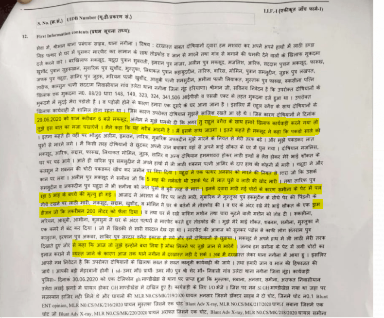Salim in his police statement testified that when assailants attacked him in Nagina on August 19, they also looted him of the cash he had, and broke his mobile. Subsequently, Salim filed a complaint at Nagina police station and demanded strict and fast action against Aleem, Maqsood, Arif, Tarif, Waris and Saddam.