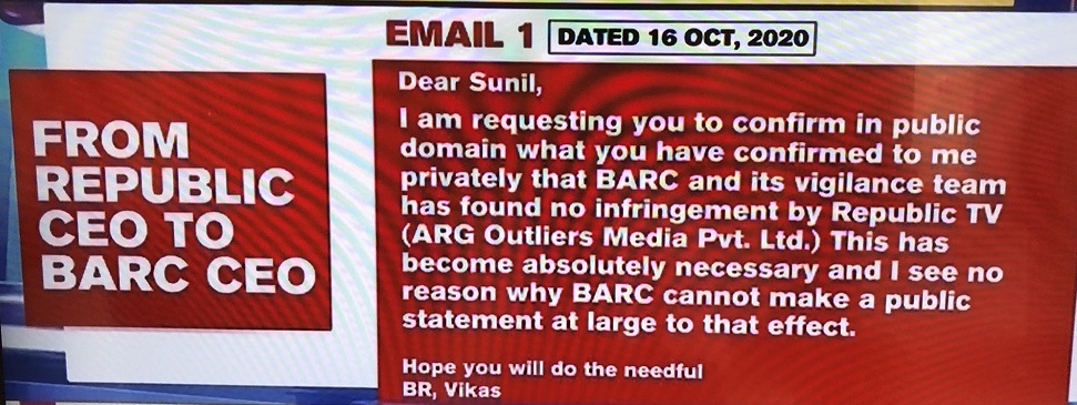 Responding to e-mail, Republic Media Network said it was delighted to inform that BARC clearly stated that there is not a single complaint or malpractice found against Republic TV, Republic Bharat or any other affiliate of the News Network.