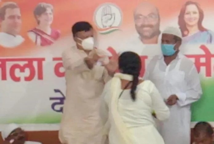 According to the reports, an argument broke out between Congress leader Tara Yadav and party’s National Secretary Sachin Naik on Saturday during a party meeting in Deoria ahead of the by-elections in the state.