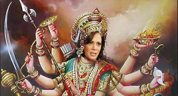 Deeply offended with this image…Kamala Harris as MAA DURGA! May bhavani forgive her for this uddandata.