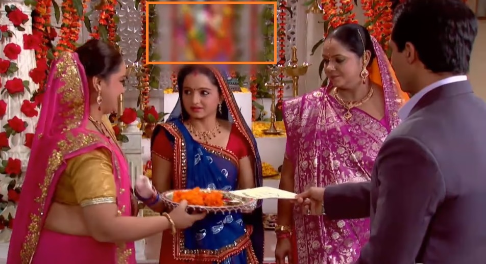 In one of the scenes, it can be seen that the idol of Hindu deities Radha and Krishna that are seen behind the actors at a set up of a family temple has been blurred, probably not to ‘offend’ fundamentalist Islamist sentiments as the depiction of idols is considered to be ‘Haram’ in Islam.