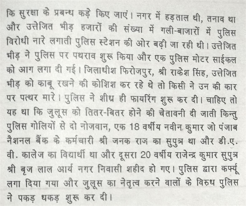 Without any warning, the police opened fire towards the crowd. 18-year-old Naveen Kumar and 20-year-old Rajendra Kumar were shot dead. As per the rules, police had to fire warning shots, but the rules were ignored. Abohar lost two more young souls.