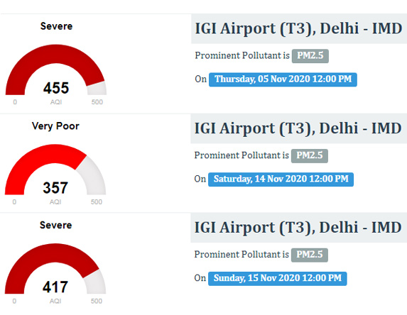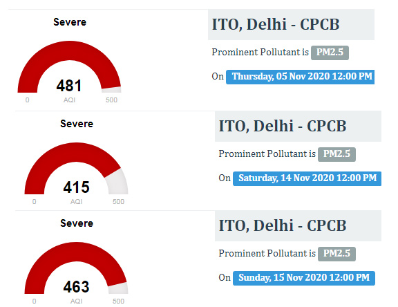 National Green Tribunal and anti-Hindu propagandists posing as ‘AQ-warriors’ often blame Diwali for the pollution in Delhi around Diwali. However, the latest numbers show that Diwali has the least impact on the Air Quality of the region. According to the data recorded by Central Pollution Control Board on 15th November, prominent pollutant PM2.5 is slightly higher than yesterday and almost equal to 5th November stats. In regions like ITO and IGI Airport T3, Air Quality was better on 15th November compared to 5th November.