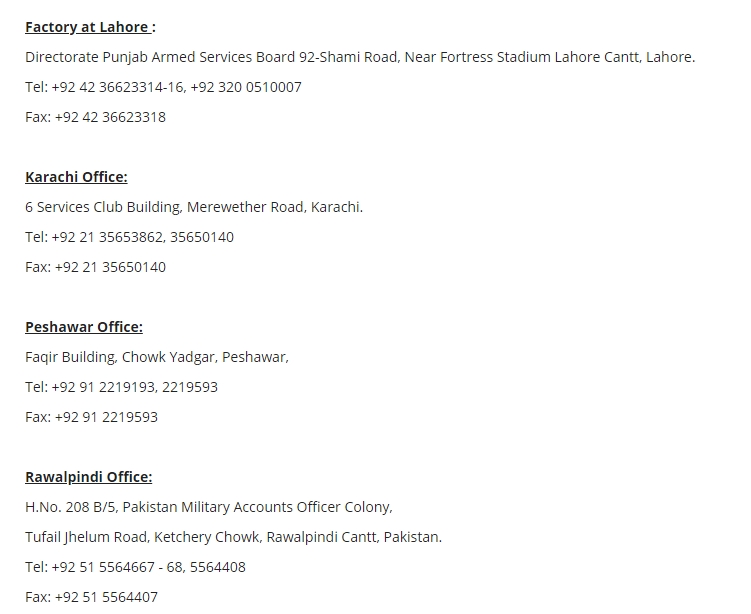 Apart from the Lahore office, the company’s Rawalpindi office is located in Pakistan Military Accounts Officer Colony inside Rawalpindi Cantonment, and its Karachi office is located in the Services Club Building. Most importantly, the company also has a factory inside the Lahore Cantt in Lahore.