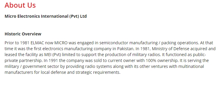 But the ties of the company with Pakistani military establishment goes beyond just a manufacturer-consumer relationship. In 1981, the company’s radio making facility was acquired and leased by the Ministry of Defence in the Pakistan government, to support the production of military radios. Till 1991, the company ran as a public-private partnership, before it was sold to private owners.