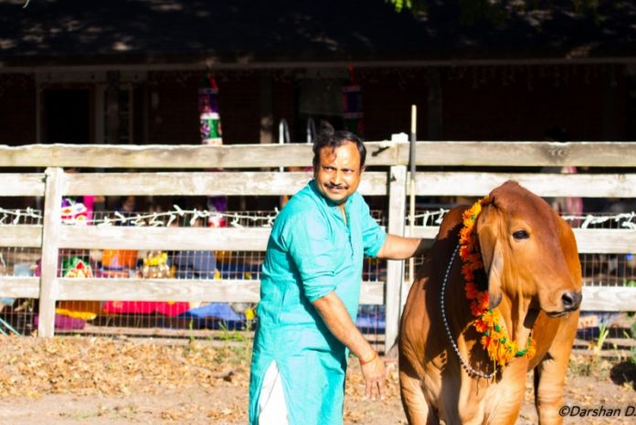 On the first day of Deepavali, many families landed up at Texas Gaushala in order to perform Gau Pooja. This is a ritual in which cows are honoured as givers of many life-giving gifts — as mothers and nurturers. In ancient times, cows were regarded as wealth. Even possessing just one cow was enough to sustain a family and be free of disease.