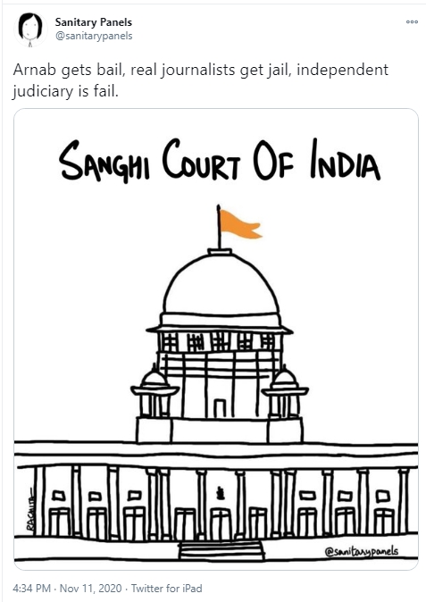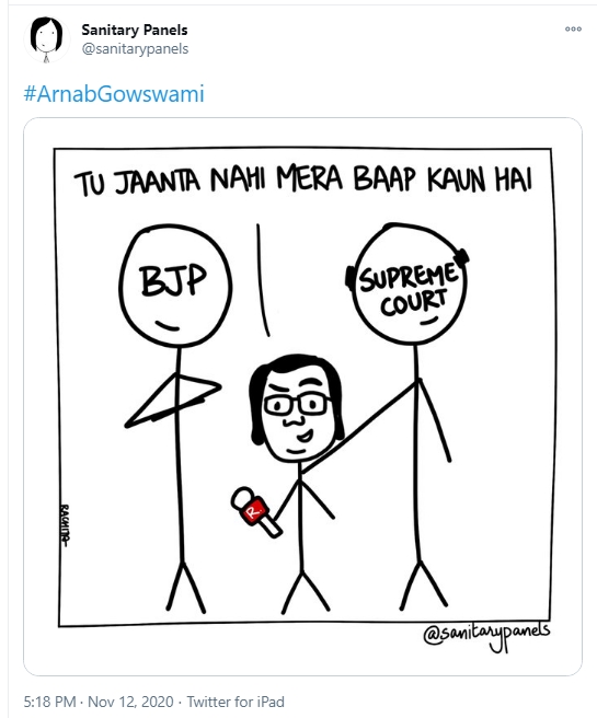 A law student had approached the Attorney General urging him to grant the necessary permission to initiate a contempt proceeding against comic artist Rachita Taneja, the founder of webcomic Sanitary Panels, following her two Tweets dated November 11 and 12. Through her stick cartoons, the comic artist had insinuated a quid pro quo relationship between the Apex Court and the Central government, alleging that on the govt’s direction, the court granted interim relief to Republic TV Editor-in-chief Arnab Goswami.