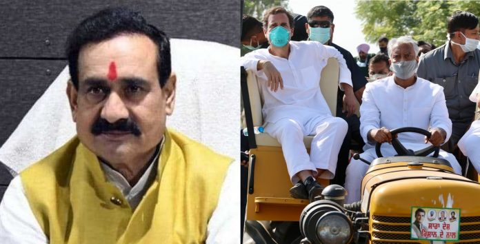 Addressing media in Bhopal, Narottan Mishra came down heavily on the Congress party, taking potshots at former party president Rahul Gandhi and Madhya Pradesh ex-chief minister Kamal Nath: “Congress leader Kamal Nath ji, who never visited farms of a farmer in 15 months, will ride a tractor. Rahul Gandhi, who drove ‘sofa-cum-tractor’ do not even know if potatoes grow above or below the ground”.