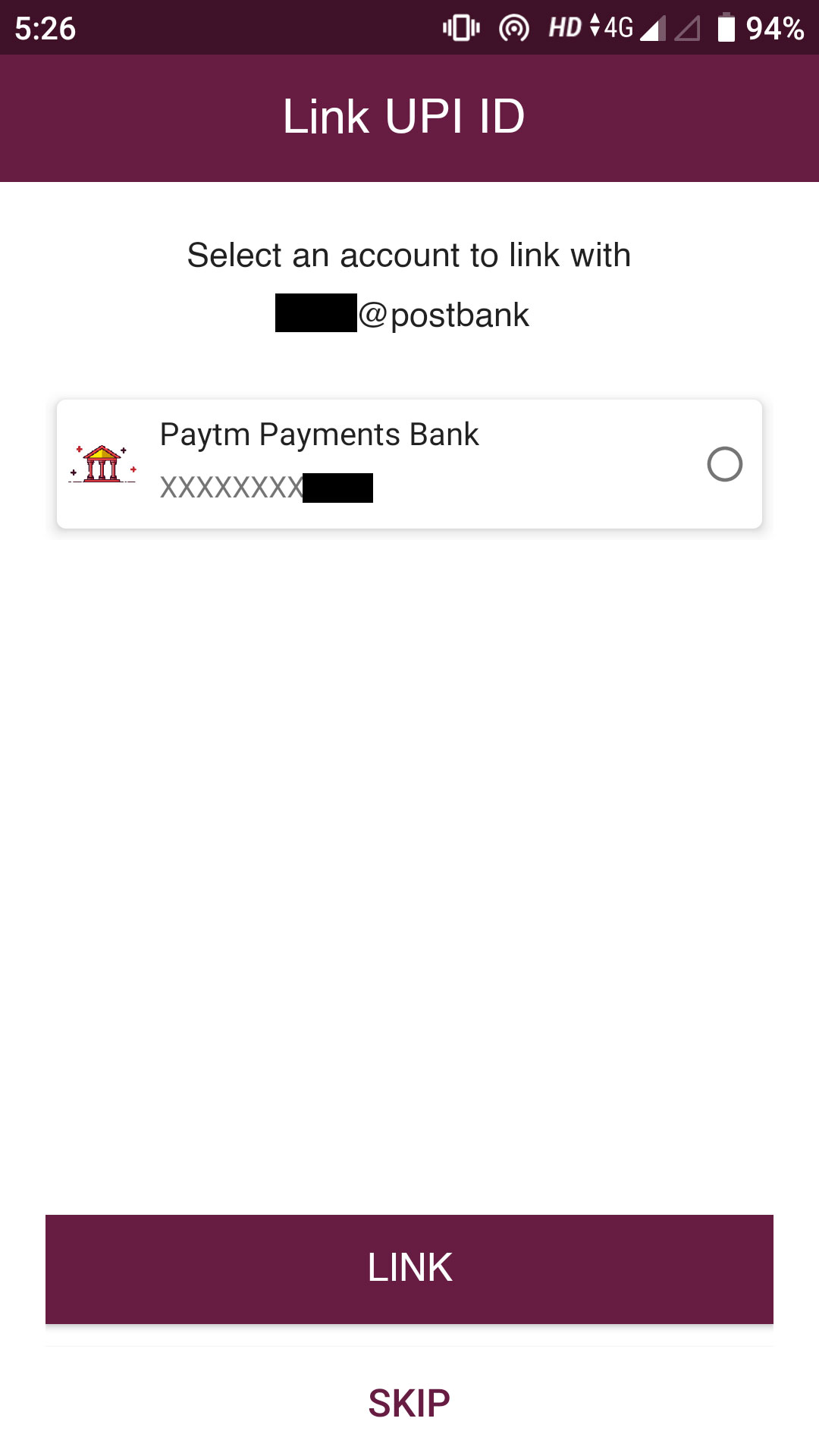 The next screen will show you some suggestions and give an option to choose your UPI ID. Once it is done, it will ask you to link the UPI ID with a bank account that you have already added to the app. You can add multiple accounts in the app.