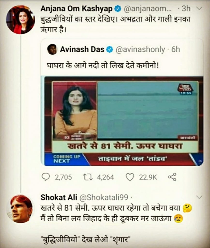 Thus, quite clearly, Shokat Ali is an abusive troll who has some extremely problematic opinions. He has a creepy obsession with Anjana Om Kashyap, he has been abusive towards Rohit Sardana for a long time and has spread dangerous conspiracy theories against vaccines.