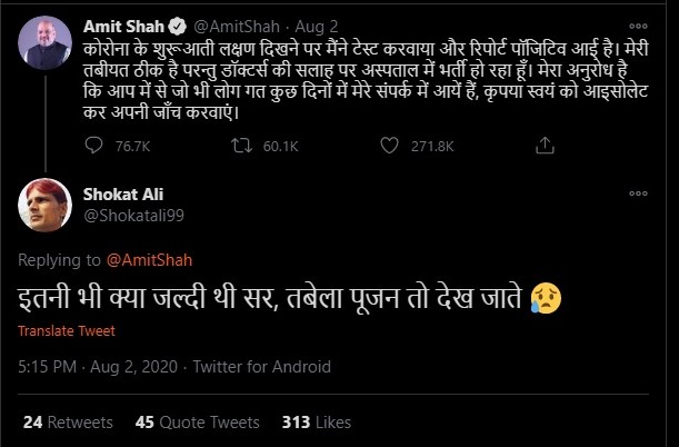 The troll was also cheering the fact that Union Home Minister Amit Shah had tested positive for the Wuhan Coronavirus. Amit Shah has recovered since then and his health has returned to normalcy.