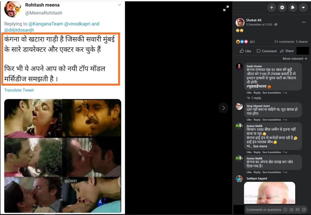 The troll makes derogatory posts for individuals who are perceived to be critical of the opposition parties as well. He has made extremely derogatory posts against Kangana Ranaut where his friends on Facebook make disgusting comments.