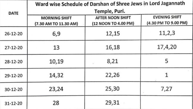 While darshan in Srimandir will begin from 7.30 am on December 26, only the residents of Wards No 2/3/6/9/11/12/15 have been allowed. In the subsequent days, residents of other wards would be allowed, but only in a phased manner.