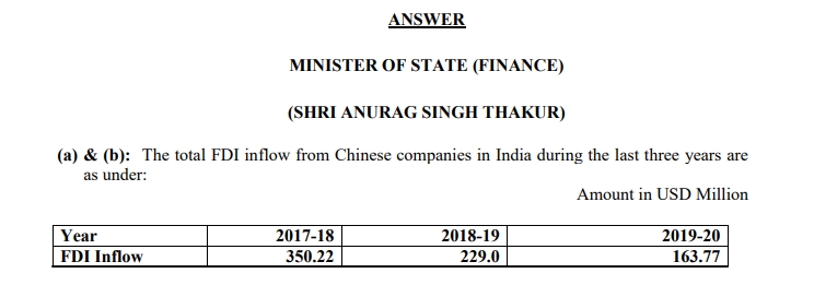 Contrary to the claims made by the Congress party, Chinese FDI into India during the financial year 2019-20 was only USD 163.77 million, not $4.14 billion. Moreover, it has come down in the last three years. It was $350.22 million in 2017-18, and $229.0 million in 2018-19.