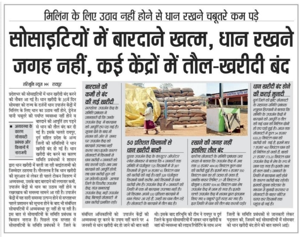 Last month, Bhupesh Baghel had written to the Prime Minister asking to pick up the paddy the state government has procured under the central pool. But the centre had clarified that FCI can’t pick up paddy beyond the limit of 24 lakh tonnes as the state has declared bonus above the MSP. According to MOU the centre has signed with states and UTs in regard of crop procurement, if the states and UTs announce bonus above MSP, FCI will not procure crop beyond a fixed quantity, and the rest has to be procured by the states/UTs themselves.