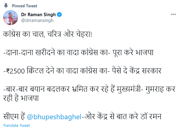 Whereas Congress has alleged that Centre is advised by state BJP Unit which is creating obstacles in procurement process. When BJP in-charge of Chhattisgarh D. Purandeshwari asked what happened to the Rs. 9000 crore facilitated by Centre for procurement process, the Congress leaders deflected it as loan by Markfed and not aid by the Centre. Bhupesh Baghel also dared BJP to stage a protest in Delhi, while Dr. Raman Singh pointed out a complete collapse of system.