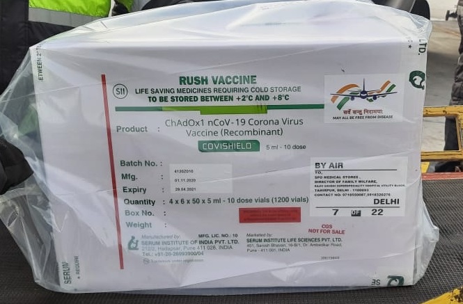 The Covishield vaccine today left the Serum Institute of India facility in Pune and were taken to different parts of India. This is how the box of vials looked.
