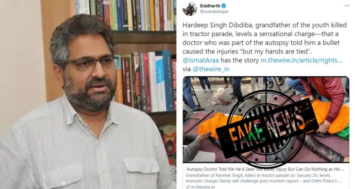 A complaint has been registered against The Wire Editor Siddharth Varadarajan of the leftist propaganda outlet ‘The Wire’ for publishing and circulating false propaganda with intent to cause violence after he had tweeted an article void of any facts pertaining to the death of a rioter during the tractor rally.