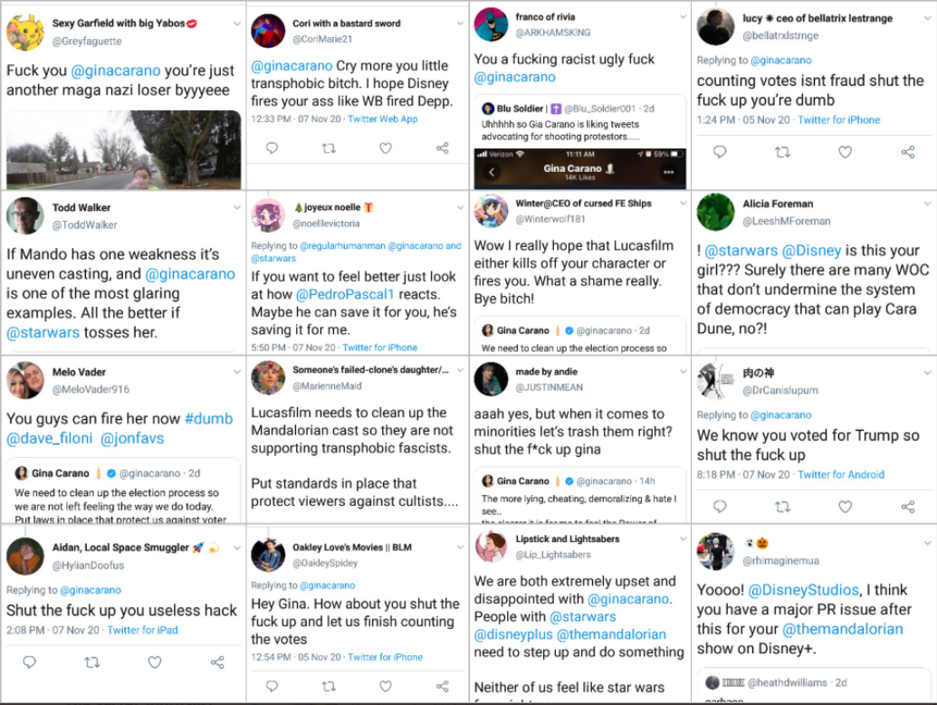 Hey @starwars will you disavow the people in your comments thread bullying @ginacarano ? https://t.co/LLogTKgWRG
