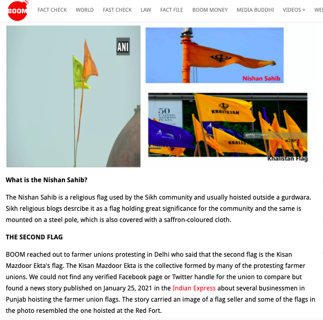 BoomLive ‘fact-checked’ the ‘second‘ flag uploaded by the rioting mob.