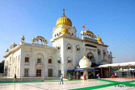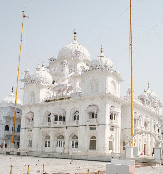 The Gurudwara Bangla Sahib in New Delhi also flies the saffron coloured triangular Nishan Sahib.