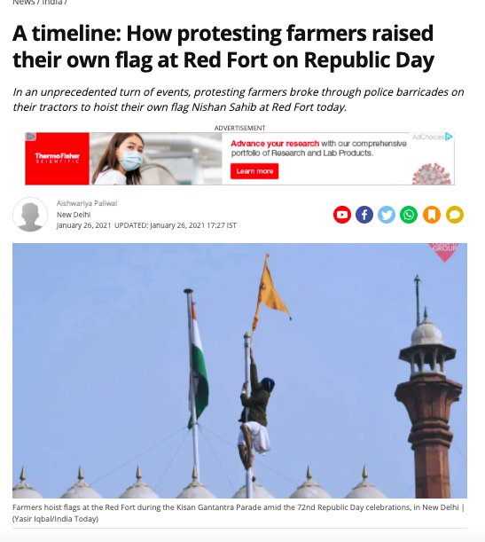 A lot has been said about the controversy over the flag hoisted at the Red Fort on Republic Day during the tractor rally riots. Most mainstream media channels claimed the flag was the Nishan Sahib, the Sikh holy flag. However, here is how they played a little mischief.