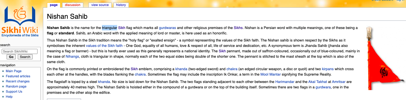 As one can see, the three sources Twitter used to flag the tweet as ‘manipulated media’ were either silent about description of the Nishan Sahib or when they did, they only described the other saffron triangular flag as the Nishan Sahib.