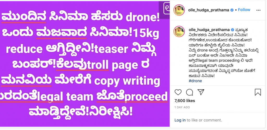 Pratham, who rose to fame through Kannada reality show Bigg Boss, has reportedly been signed to play the role of Drone Prathap. The actor has also revealed about his new movie on social media platforms.