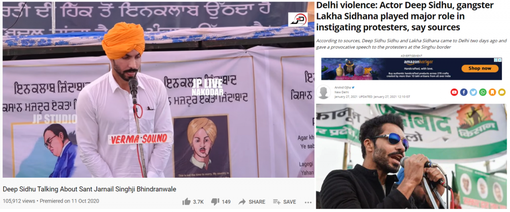 While the flag being unfurled in a place where the Indian national flag is unfurled usually may be improper, what is more problematic is the open alignment and association of some of the protesters with the Khalistani cause. Punjabi actor-singer-activist Deep Sidhu, who the farmer unions have alleged was responsible for leading the protesters to the Red Fort, has been quoting Jarnail Singh Bhindranwale while there have been posters of Bhindranwale seen in the protests, something which Pro-Khalistani outfit Sikhs for Justice (SFJ) had urged farmers to display a couple of days before the conflagration.