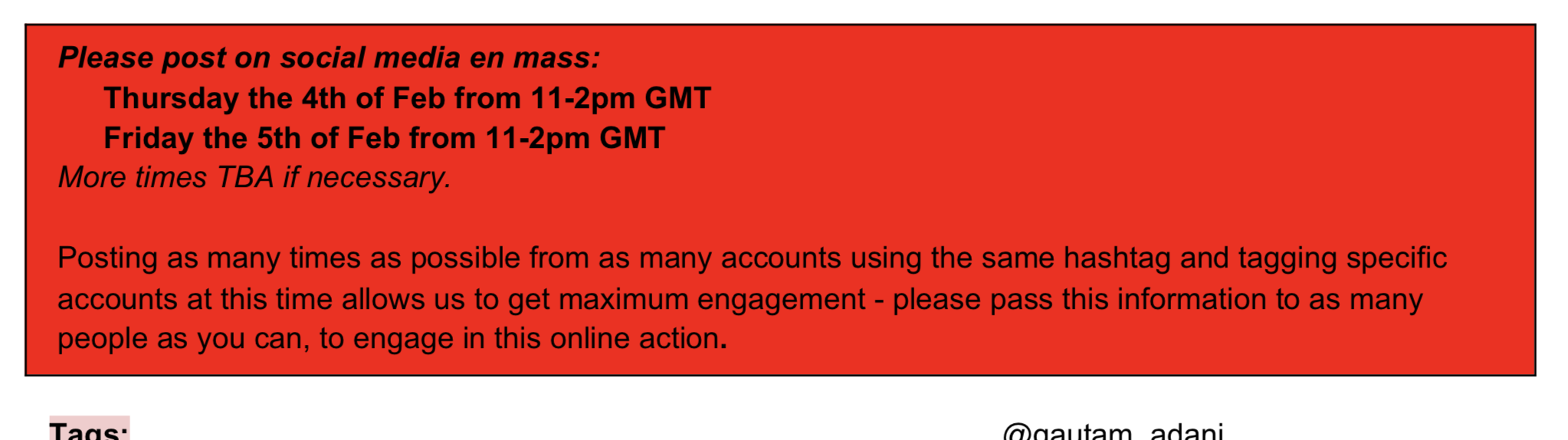 Now, the document itself actually planned for ‘tweet storms’ on the 4th of 5th of February.