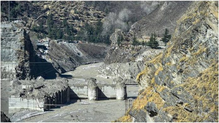 The flooding occurred due to cloudburst and the subsequent breaching of a reservoir near Raini village that destroyed many river bankside houses in the area.