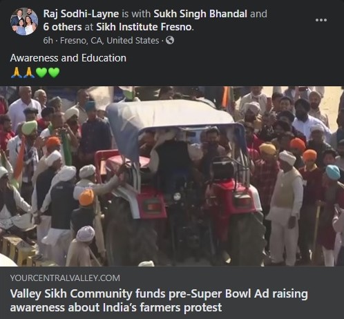 It is the Facebook account of Raj Sodhi Layne, however, that reveals the dark underbelly of the people behind the ad. On her profile, she shared a news report that credited the ‘Valley Sikh Community’ for funding the expenses.