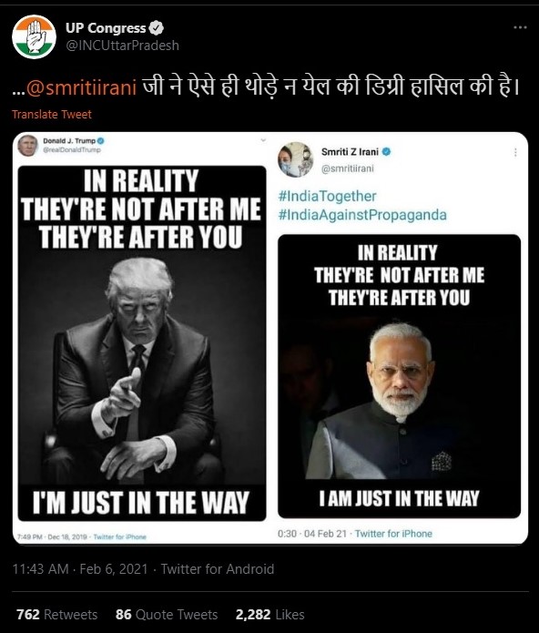 Nevertheless, the Congress party did decide to engage in such petty behaviour. And as it turns out, they were wrong when they said that and Smriti Irani, in fact, did not steal the meme from Donald Trump. In fact, the original meme featured Narendra Modi much before Trump shared it himself.