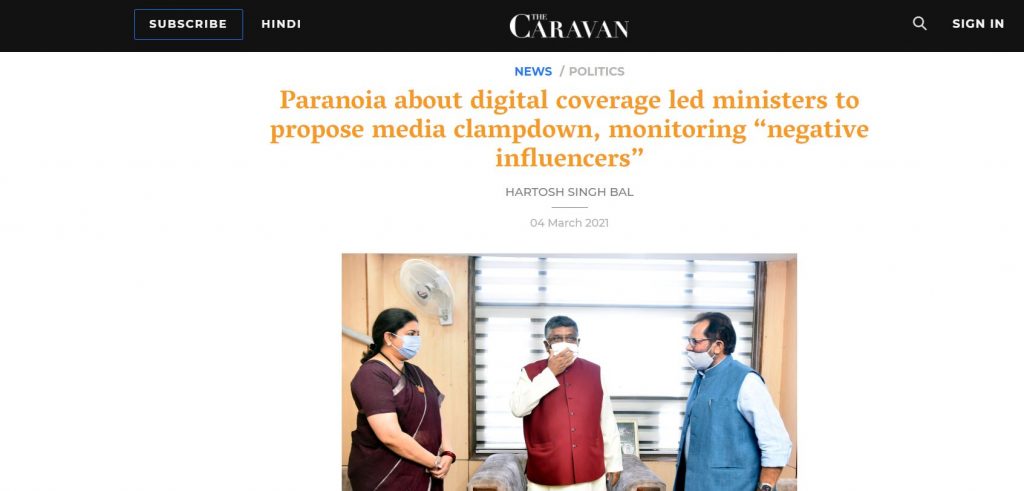The Caravan does a hitjob against the Govt’s proposed new guidelines for tech-giants, OTT platforms and digital media