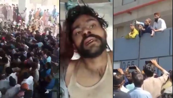 Sher Shah, Karachi. Islamist mob lynched a man to death in JB Garments Factory for allegedly desecrating a copy of the Holy Quran. Police and Rangers, heavily outnumbered, failed to protect the accused. pic.twitter.com/Yn9kkhTaxB