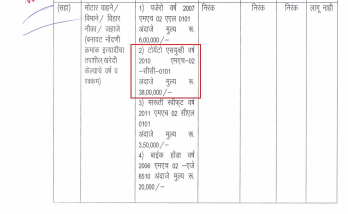 Vijaykumar Ganpat Bhosle is a Shiv Sena leader, and in his affidavit for 2014 Maharashtra Legislative Assembly election, he had listed the Toyota Prado SUV with the same number under the list of motor vehicles owned by him. He had quoted the current price of the vehicle at that time at Rs 38 lakh.