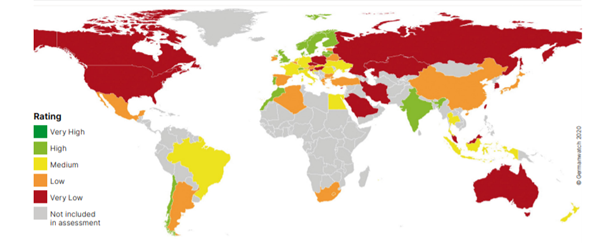 Before moving on to the constituent factors, we can have an overall look at where India stands on the Climate Change Performance Index. As can be seen below, India is rated very high, at par with some of the Scandinavian nations and Chile. This is even as the vast majority of G20 countries are trailing in the rankings. India’s track record of being the only “2°C compatible” country was flagged in a report released by a coalition of 14 global thinktanks. According to the IEA, India is already on track to exceed the commitments made in its nationally determined contribution (NDC) under the Paris Agreement.