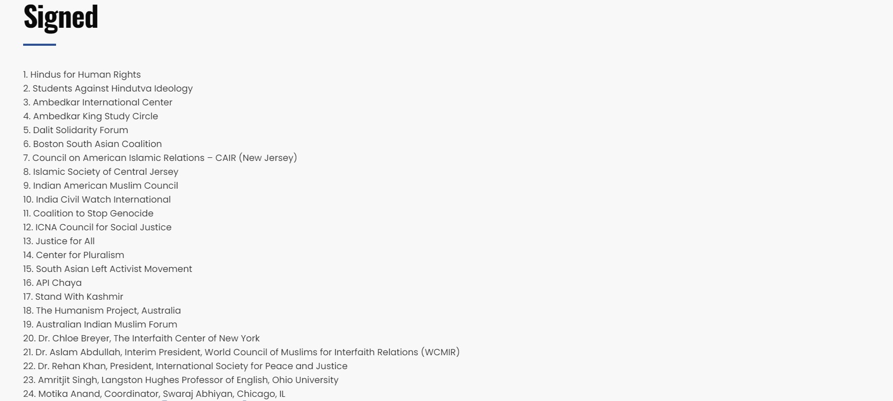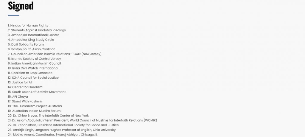 Here are some details about some of the organisations that have signed in support of Audrey Truschke’s Hinduphobia: