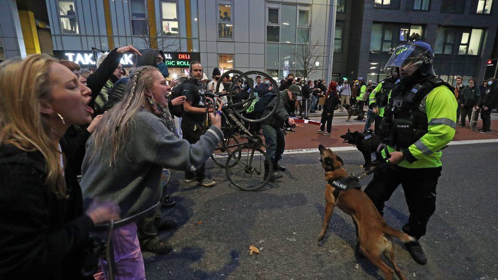 The protest took place a day after anti-Lockdown protests in central London resulted in 33 arrests. Mass gatherings are currently prohibited under the coronavirus legislation.