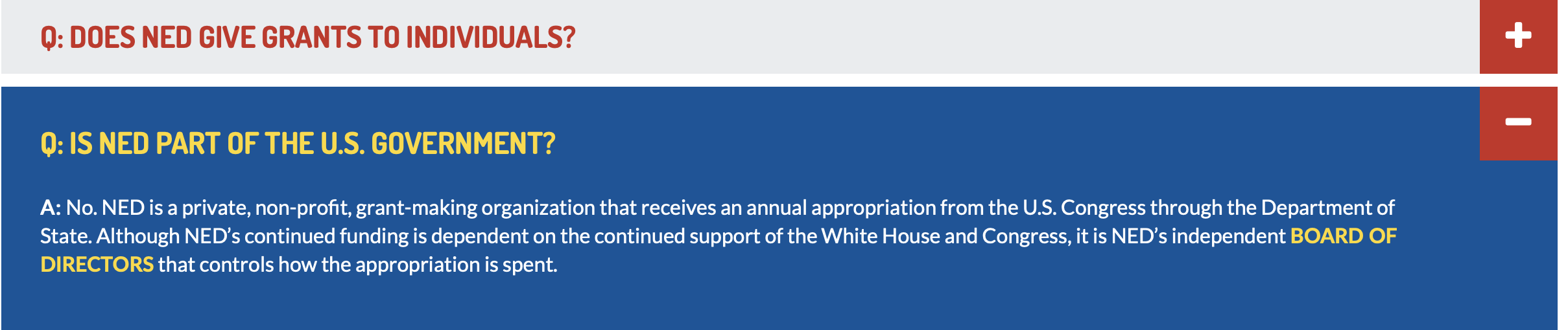 On their website itself, it is mentioned that NED receives massive grant from the US government.