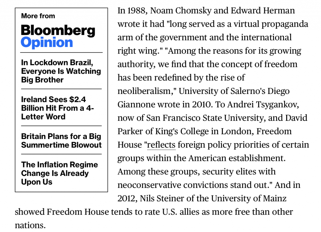 In fact, in 1988 itself, Noam Chomsky had exposed Freedom House as a propaganda arm of the US establishment.