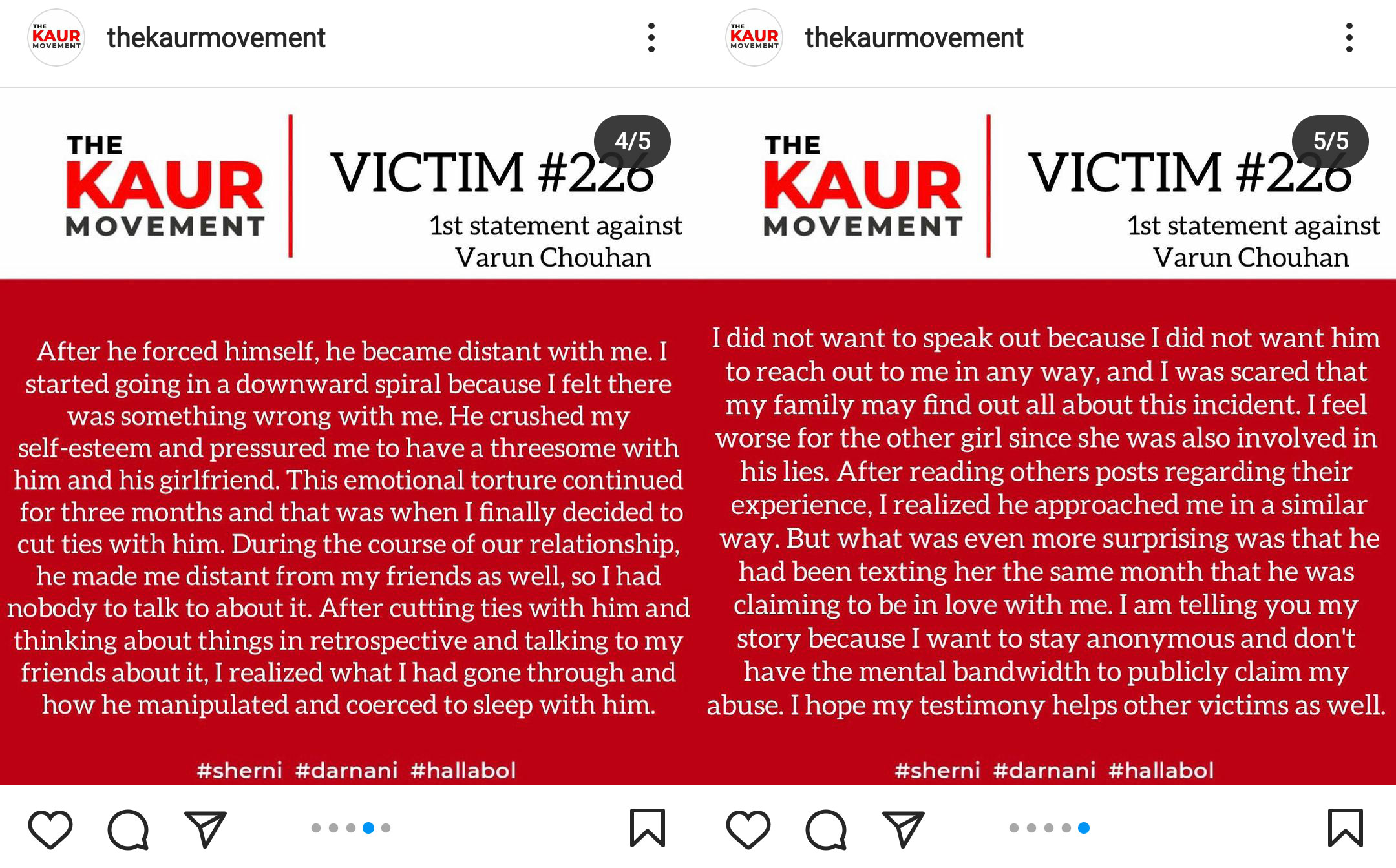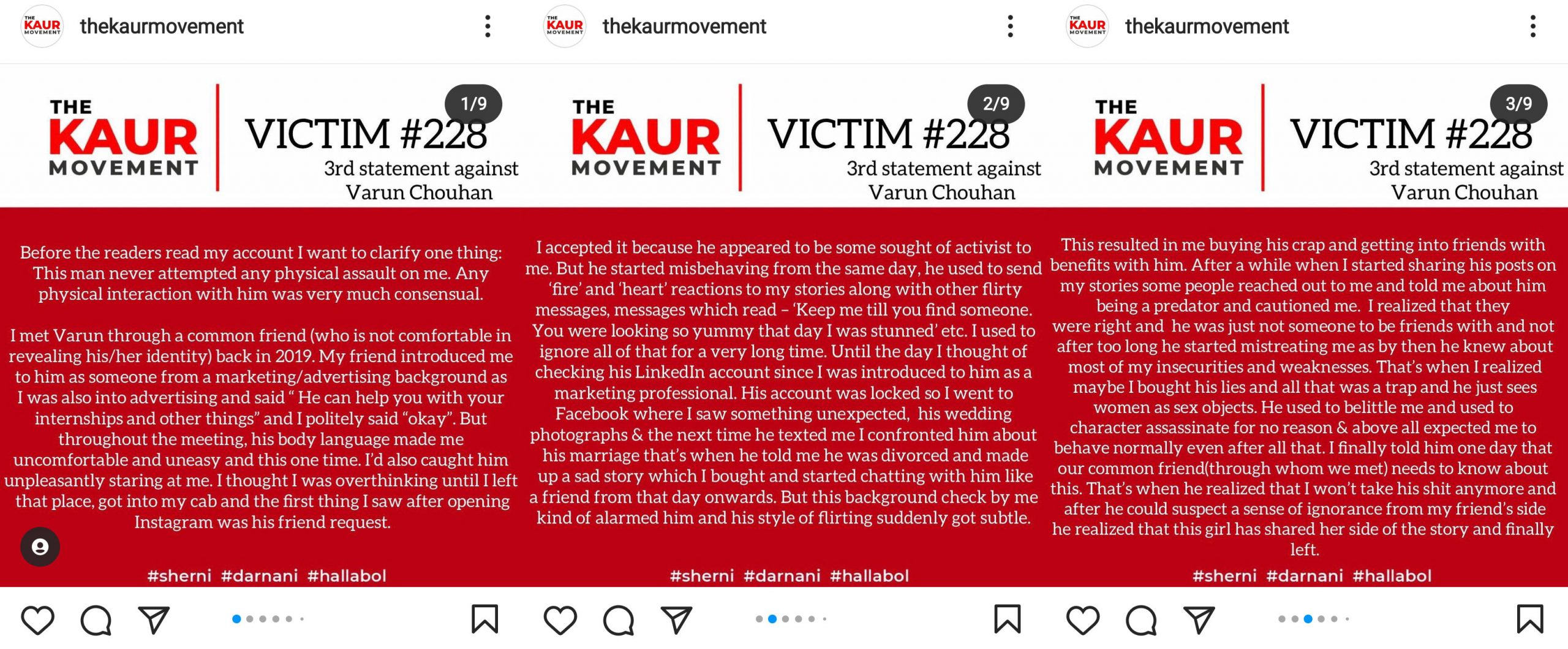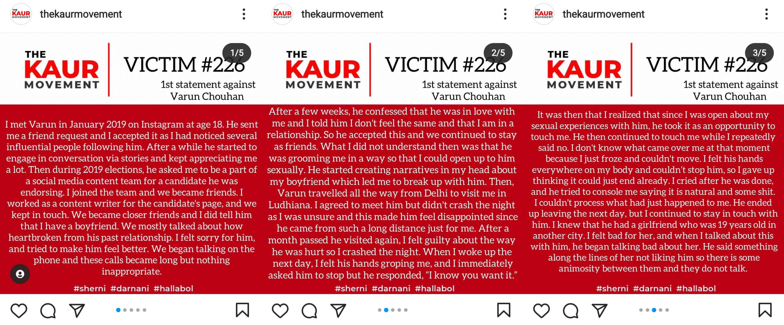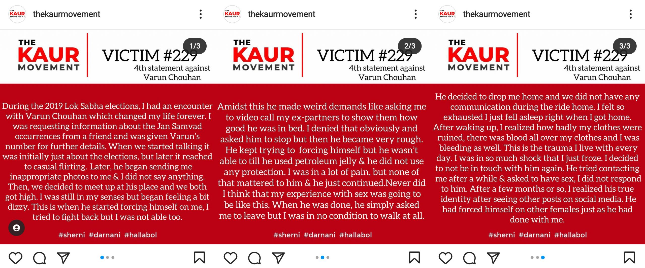 As narrated by the victim, she came in contact with Varun in 2019 after he sent her a friend request. During the 2019 Lok Sabha elections, he invited her to be a part of the content team for a candidate he was endorsing. She agreed, and they became friends while working on the project. In her story, she mentioned that Varun talked a lot about his past relationship, and she felt sorry for what he went through.