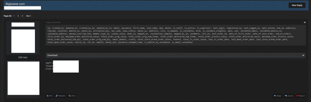 I believe this can be the same dataset which was being sold by “ShinyHunters” in 2020 for ₹30 lakhs. However, the scale of the breach looks quite alarming and @bigbasket_com should look into this asap !@troyhunt you may want to add this at @haveibeenpwned 🙂