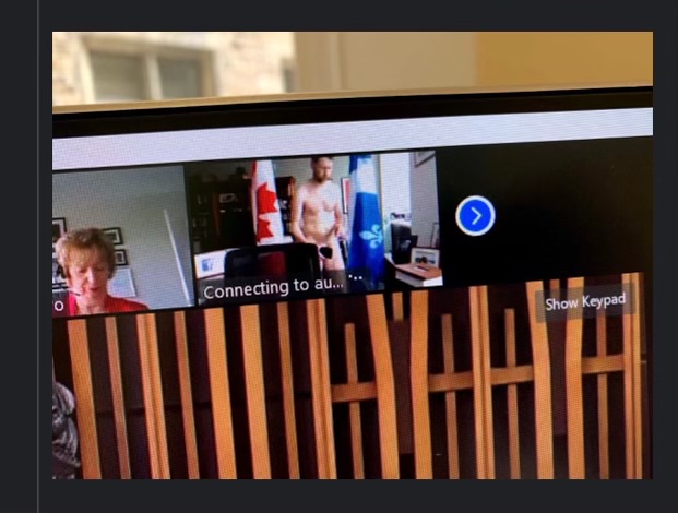 William Amos, a Liberal MP who represents the Pontiac constituency in Quebec, was caught covering his private parts with a mobile phone, completely naked between the flags of Canada and Quebec, as his laptop switched on during the virtual conference.