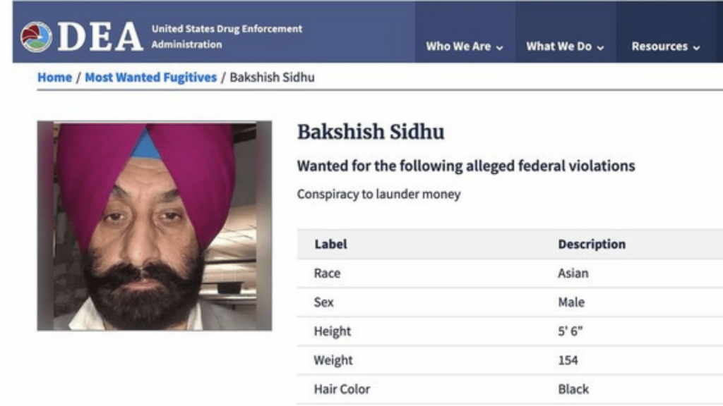 Sidhu is currently featured on the Most Wanted List of the U.S. Drug Enforcement Administration.