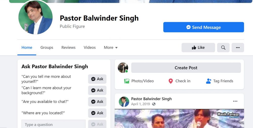 Pastor Balwinder Singh is a Christian godman and self-styled faith Christian healer based in Jalandhar, Punjab.