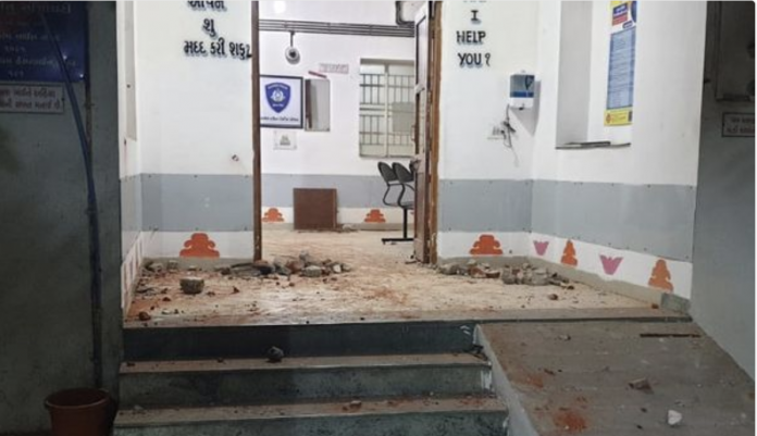 As per the report, the mob gathered in large number and attacked Kundvav police chowki and Town police station. Two bikes and one car were burnt down by the mob. The Kundvav police station was also destroyed by the mob. The mob then proceeded to attack Town police station and started pelting stones.
