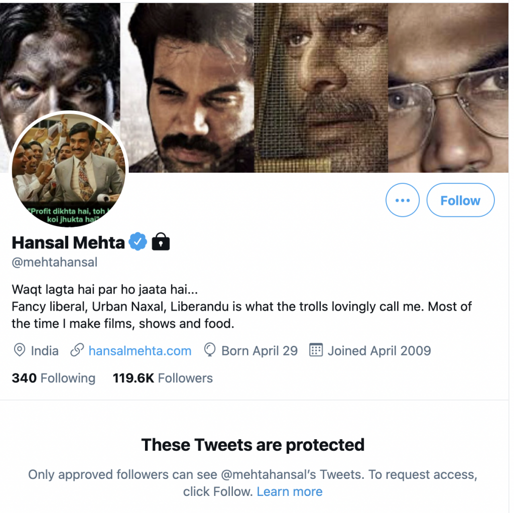 However, Hansal Mehta has since made his account private.