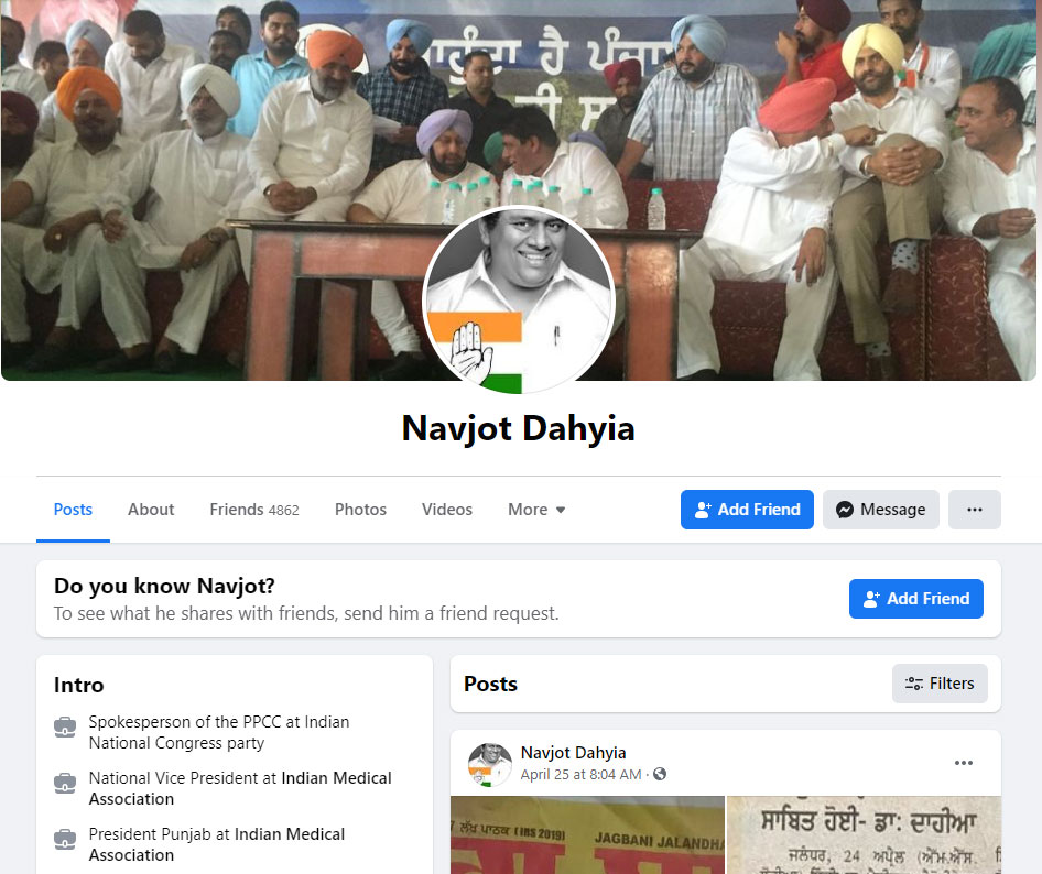 While every news agency ran to quote Dr. Dahiya and projected him as a wise doctor serving as Vice President of the Indian Medical Association, no one cared to point out his political affiliation. Dr Navjot Singh Dahiya was a member of the People’s Party of Punjab, founded by Manpreet Singh Badal. Political Kida shared a post on Twitter showing Dr. Dahiya’s association with the Congress party.